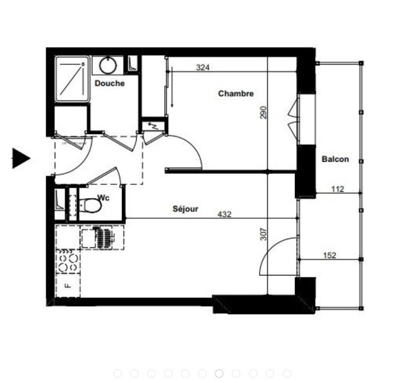 Salle d'eau : 3.20 m², 1 Douche, 1 sèche-cheveux